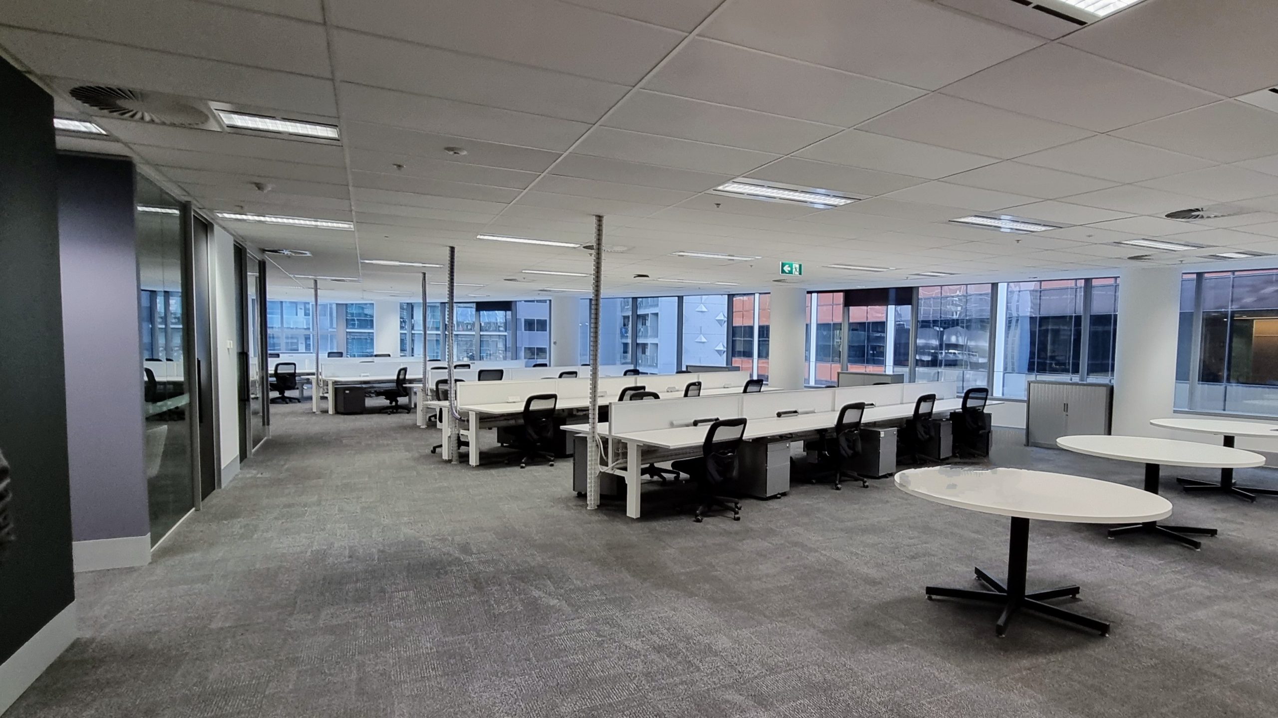 The office fit-out included a Physical Security Zone 2 work area spanning the entire floor of the high-rise building with considerations to the building reception and building core. The fit-out also included a Physical Security Zone 3 meeting room to enable storage and presentation of security-classified material.